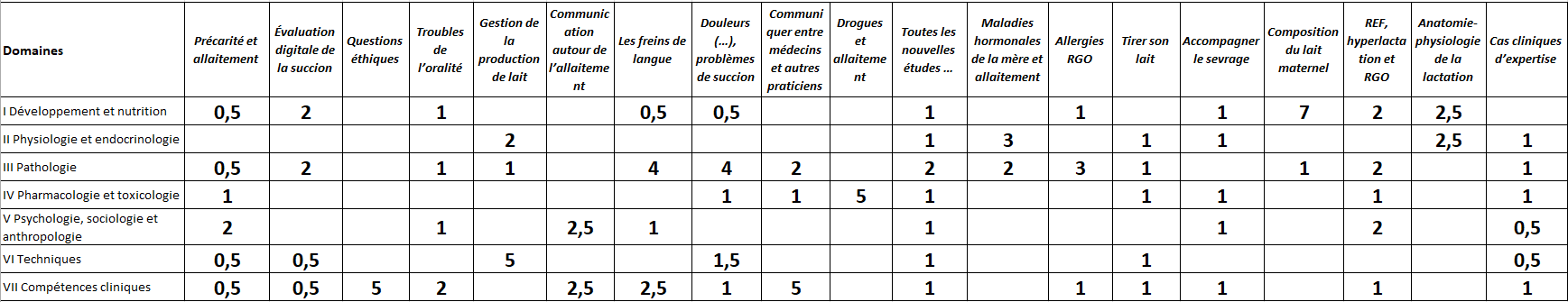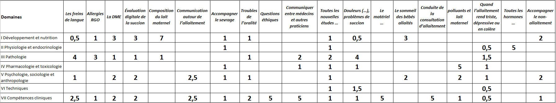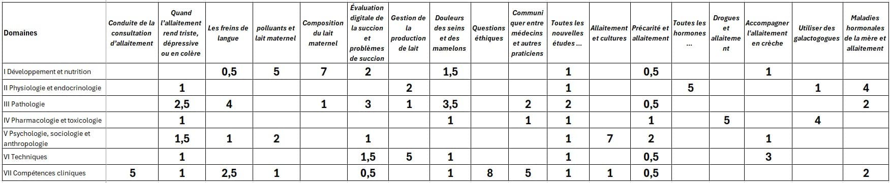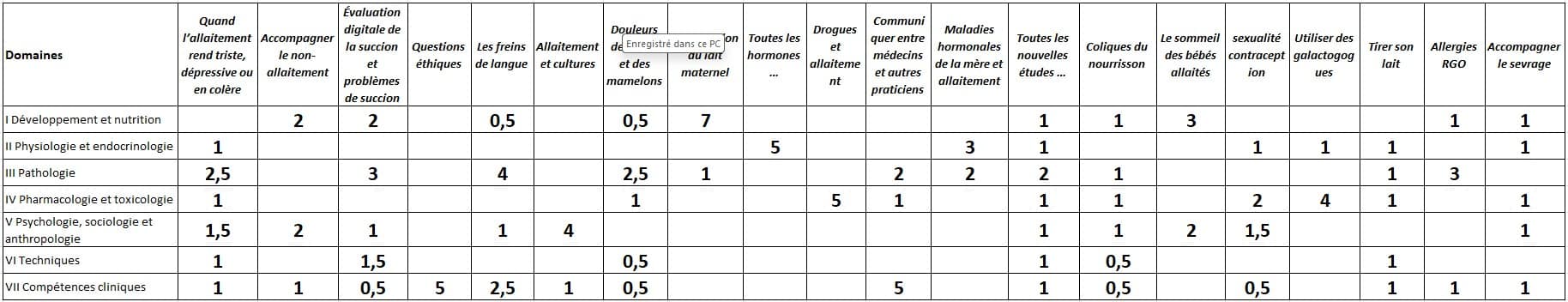 Chaque CERP peut correspondre à un ou plusieurs domaines du Plan détaillé du contenu de l’examen d’IBCLC :